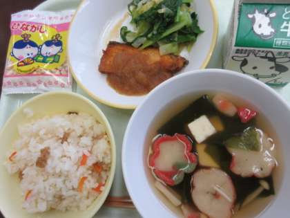 ちょっと早いおひなさまの献立でしたが、なばなの香りが広がり、今日の青空にぴったりの給食でした。