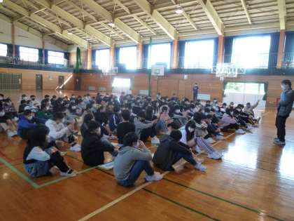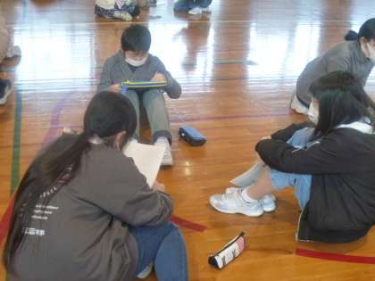 体育館はしっとりとした雰囲気に包まれ、5、6年生は互いに真剣に聞き合い、考えていました。