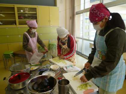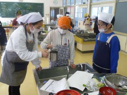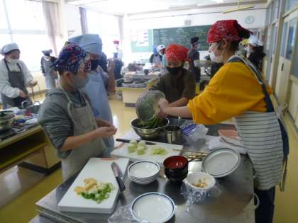 手際よく進める班、少し時間がかる班がありましたが、時間通りにスムーズに調理していました。