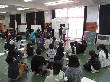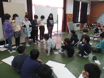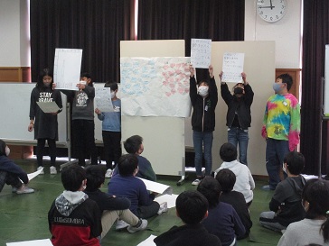 それぞれの学年委員会で準備してきた「新5年生に向けてパワーアップに必要なこと」を、今日の委員会集会で伝え合いました。「学年のみんなのことをもっと知ることができた」や「たくさんのふわっと言葉を使い合うことができたね。これからももっと、ちくっと言葉をなくしていかないといけないね」「みんなで力を合わせて、高学年に向けてがんばっていきたいな」など、感想をもった子供たち。アンケート結果をまとめたり、ミニゲームやクイズに参加できるように伝えたりして、楽しく、分かりやすく互いに伝え合うことができました。高学年に向けて、さらに気持ちを高め合った4年生の頼もしい姿が見られました。