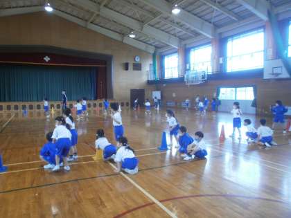 学年合同の体育をしました。体でジャンケンをしたり、サイドステップをしたりして、体をほぐしました。また、明日の50m走に向けて、スタートダッシュの練習や、まっすぐ走る練習をしました。