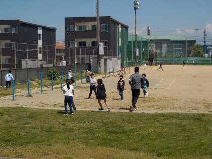 今日、たくさんの子供たちが広いグラウンドを嬉々として走り回っていました。