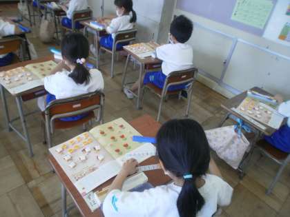 (おうちの方々へ:算数ボックスの中の物への記名、お忙しい中ありがとうございました。)