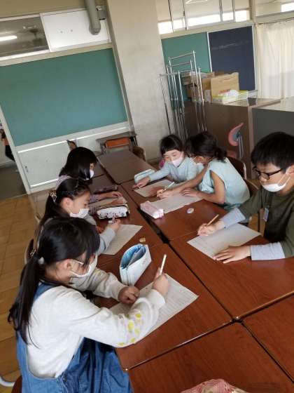 登校後や休み時間に活動していた子供たちがいました。一年生の入学をお祝いする歌をつくる実行委員です。自らやると決めて話合いを繰り返し、いよいよ完成しました。