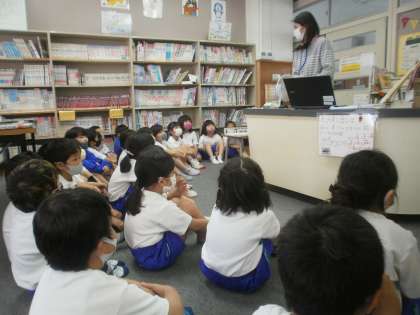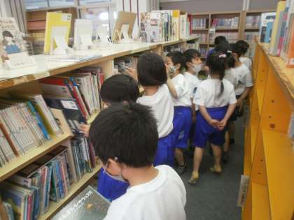 司書の小川先生から、図書室の利用の仕方や約束、本の借り方を教わりました。1年生は、この日をとても楽しみにしていたので、図書室のたくさんの本を見ながらうれしそうに選んでいました。