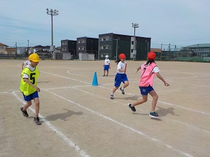 午後にリレー練習を学年で行いました。もう一度、各団で作戦会議を行い、走順や距離を変えたり、バトンパスの仕方を練習しました。「ぼくは少しでも走力を生かしたいから、長い距離を全力で走るよ。」「バトンを押し込むようにしっかりと渡そう。」「前の走者がどのあたりに来たらリードをするか、足の歩数で変えてみたら?」など、作戦を試しながら練習をしました。6限に各団のタイムを取り、このタイムをさらに縮めるための作戦を、さらに考えている熱心な5年生の姿がありました。