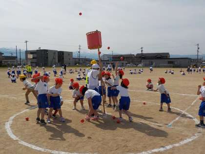 玉入れでは、練習の成果を発揮し、玉の投げ方を工夫しながら練習よりも多くの玉を入れることができました。どの団も、自分たちの成長を実感でき、「来年は、より多くの玉を入れたいな」など振り返り、来年の運動会への意欲を高めました。