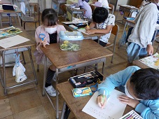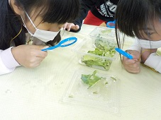 小さな卵や幼虫、さなぎを観察しています。今日も一匹旅立ちました。子供たちは、チョウの成長する姿に心が動かされています。