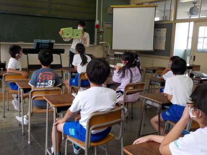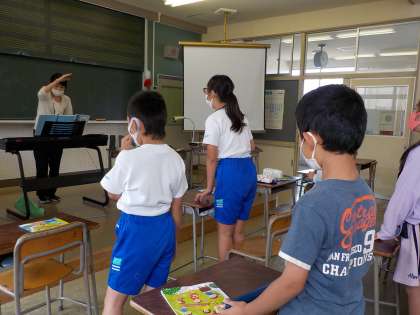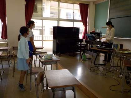 本校では、音楽専科の浅野教諭が3,4年生の音楽の授業をしています。