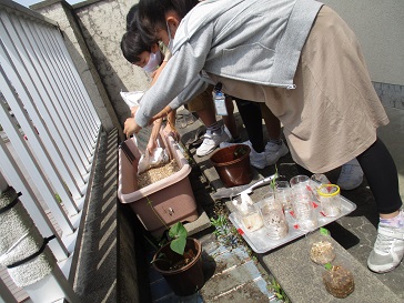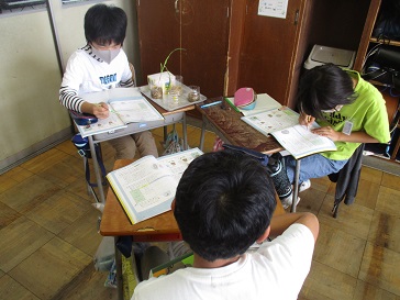 理科の学習では、植物の発芽や成長に必要なものは何かを調べています。今日は、発芽したインゲンマメやトウモロコシをプランターに植え替えました。実験結果が楽しみです。その後は、班で教科書の問題に取り組みました。互いに教え合い、協力する姿が見られました。