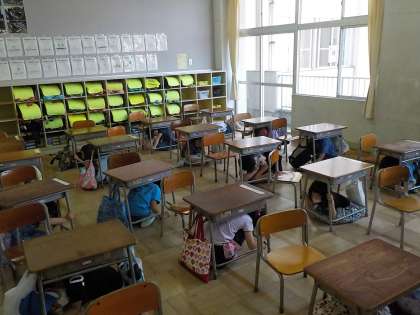 今日の避難訓練は地震が発生したことを想定して行いました。子供たちは放送を聞くと素早く机の下に隠れ、集中して訓練に取り組んでいました。
