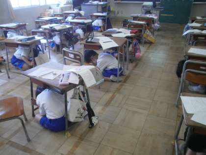 「真剣に」「机の下に避難」「避難先を指さし確認」をしっかりと確かめることができました。