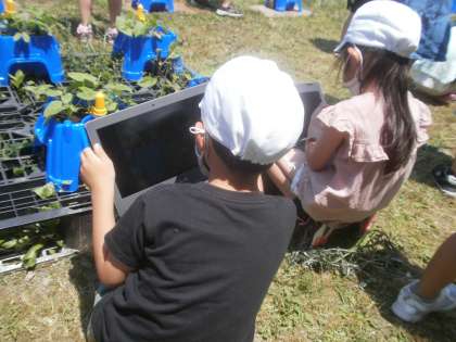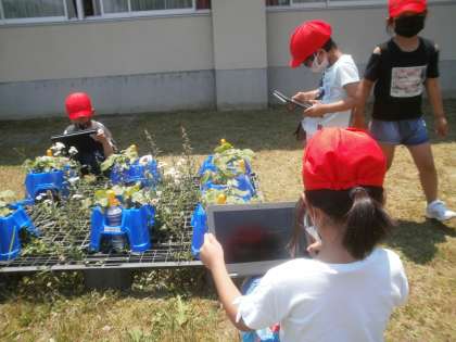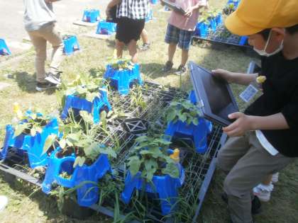自分のあさがおの写真を撮りました。上から、横から、思い思いにとても嬉しそうに撮っていました。