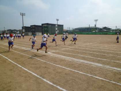 教頭先生から陸短距離走の走り方について教えていただきました。