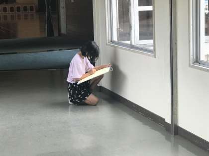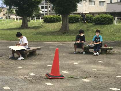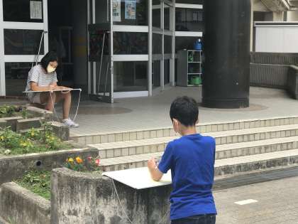 外から見た校舎、校庭の前にある大きな木、窓からみた玄関など、子供たちが選ぶところは様々でした。みんなじっくりと絵の構想を考えていました。