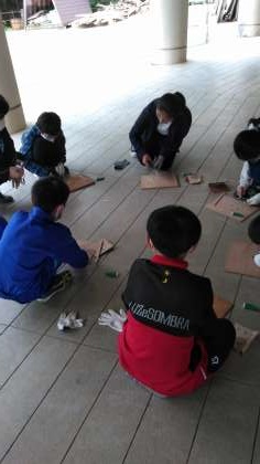 「手が痛い!」と言いながらも、頑張ってヤスリで仕上げていきます。