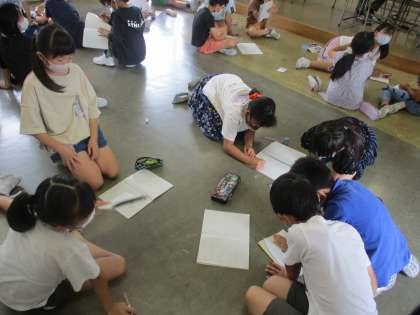 今日から夏休み明けまでの期間で「とやま環境チャレンジ10」を実施します。本日、活動内容を指導し、記入用紙や説明用紙を持たせました。ご家族で協力する場面もあると思います。どうぞよろしくお願いします。