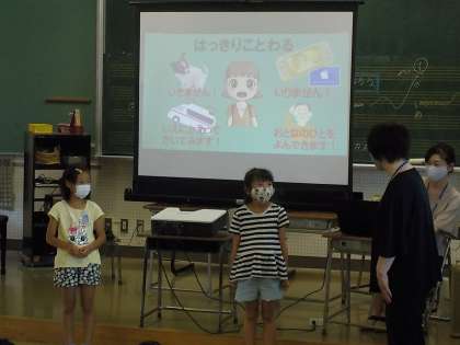代表の子供たちが実際に受け答えなどを実践し、体験的に学ぶことができました。今日学んだことを生かして、これからも安心・安全に過ごして欲しいと思います。