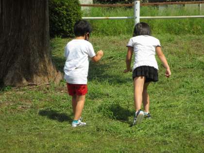 広田小学校は、自然がいっぱい。昼休みに外に出てみたら、何か見つけたようです。トンボかな?バッタかな?
