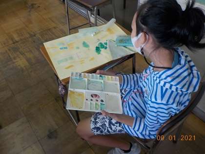 遠近を表現する技法を使って、思い出の風景を描きました。