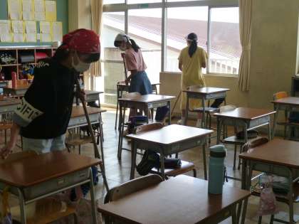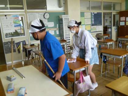 2学期の清掃が始まりました。 めあては「黙働」です。 自分の担当箇所を黙ってきれいにしていました。