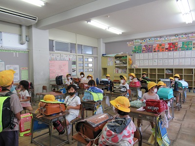 帰りの準備もスムーズにできるようになってきました。「名札を取るよ」と互いに声をかけながら準備をしています。帰る前には、元気に「さようなら」とあいさつをしました。また明日も、元気に登校しましょう。