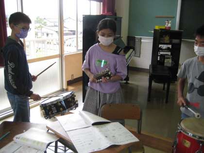 音楽科では、打楽器を使い、リズムアンサンブルをしました。
