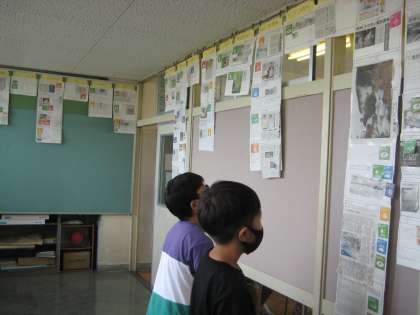 総合的な学習の時間では、友達の新聞スクラップを見て、これまでの振り返りをしました。