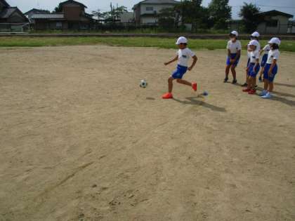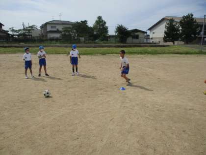 体育でキックベースをしました。団で練習をし、団対抗で試合をしました。