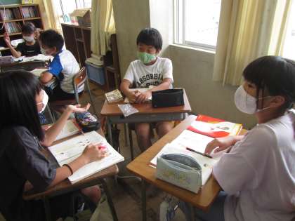 どんな言い方をしたら互いに納得するのか、教科書を基に話し合いました。ペアで話した後には、見ていた人からどう思ったかコメントをもらい、よりよい話し方について考えました。