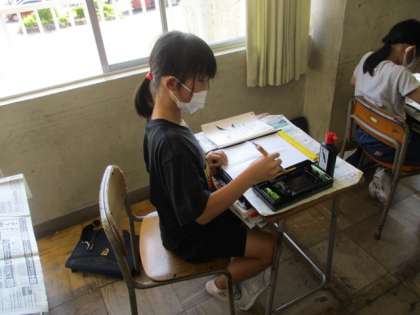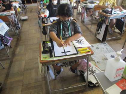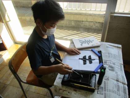 書写の時間に、毛筆で「麦」と書きました。字の中心を意識すること、名前をきれいに書くことで、前回の字よりさらに磨きがかかりました。