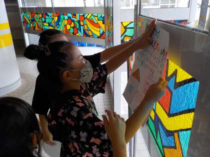 また、全校に自分たちの活動を伝えたいと願い、ポスターを作って目立つところに貼る子供もいました。