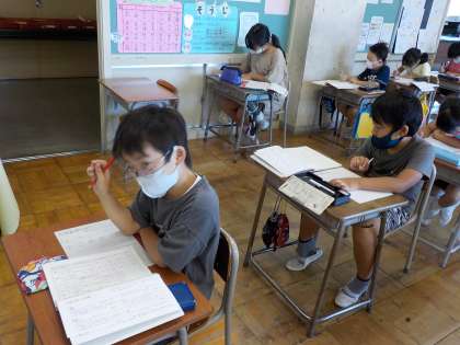 「へん」と「つくり」に分けられそうな漢字をたくさん見付け、漢字パズルをつくりました。一組だけ習っていない漢字のパズルを入れてもよいという、みんなで考えた特別ルールもあり、楽しそうに問題を出し合っていました。