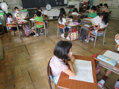 国語科で「どうぶつ園のじゅうい」の学習のまとめをしています。お話を読んで、獣医さんの仕事で自分が考えたことをグループで発表しました。発表では、「獣医さんは色々な動物を看なければならないから、仕事していて大変だと思った」「仕事は大変だけど、何でも直せる獣医さんはかっこいいな」などの意見が出ました。