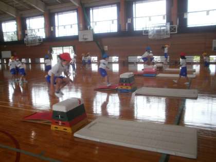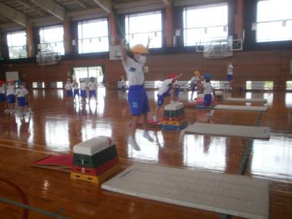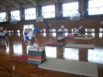 「だんだん上手にできるようになってきた」「跳び箱、楽しい」と、どの子も生き生きと活動していました。