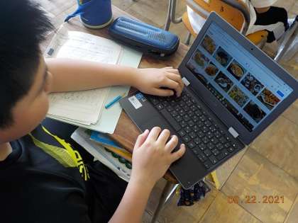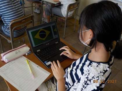 総合的な学習の時間、国際理解の学習では、外国の生活について調べています。来週、ブラジルの方とオンラインでつながり、通話できる機会があります。それに向け、ブラジルのことを一人一人が調べてまとめています。