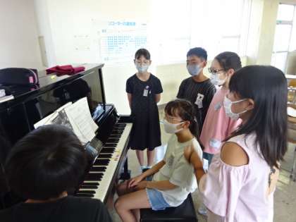 音楽科では、和音の響きを感じながら歌うために、パートに分かれて短時間で練習しました。