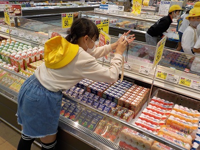 社会科の見学で近くのスーパーマーケットに見学へ行きました。お客さんがたくさん来る工夫や秘密を探しました。