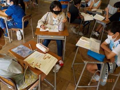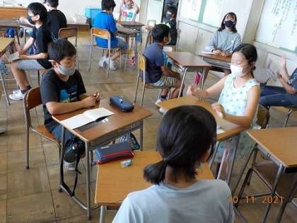 国語科ではテーマを決めて、3〜4人で話し合う学習をしています。