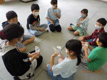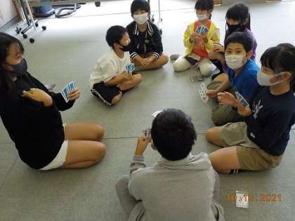 そよかぜ班活動がスタートしました。昼休みに縦割り班で集まり、トランプやハンカチ落とし等、楽しいゲームをして過ごしました。