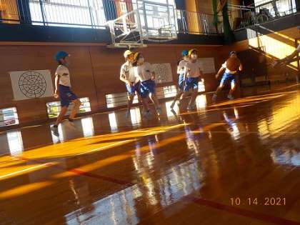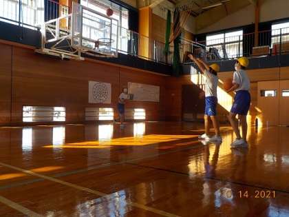 10月から、バスケットボールの学習が始まりました。パスをつないで、全員で協力してプレーしています。