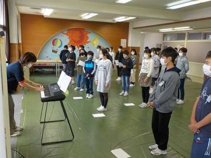 2学期から合唱の練習をしています。 今日は、初めて学年で集まって声を合わせました。