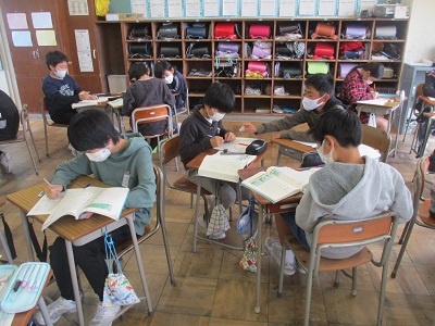 国語科「固有種が教えてくれること」の学習では、文章がどのように構成されているか、段落に分けて考えています。筆者が読み手に伝えたいことや考えてもらいたいことにも着目して学習を進めています。