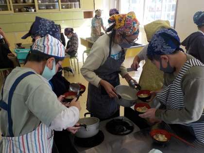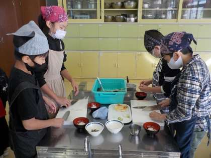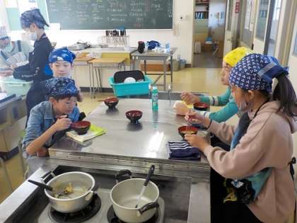 また、火加減だけでなく、具の切り方や入れるみそやにぼしの量も工夫しました。「どれくらいの量のにぼしを入れたら、もっとおいしくなるかな」「大根や油揚げからも、おいしい出汁が出てるね」など、様々な味の感想も聞かれました。今日の調理実習で学習した経験を、また家庭でも生かしてほしいと思います。