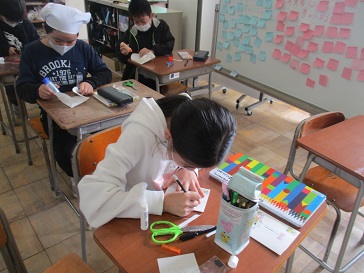 28日(木)の就学時健康診断に向けて、準備を進めています。来年度入学予定のみなさんにぜひ渡したいと、1年生さんがかわいい封筒と生活科で育てたアサガオの種を用意してくれました。1年生さんの思いも込めて、5年生が作った塗り絵とともに、袋詰めの作業や宛名書きをしています。