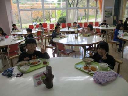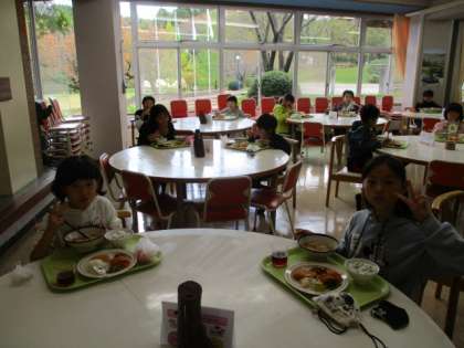 食堂で昼食をとりました。「コロッケがとてもおいしかった」などの意見が聞けました。また、食べ終えた後の机を綺麗に拭いたり、机の周りを綺麗にしたりするなど、作ってくださった人への感謝も忘れずに行動することができました。