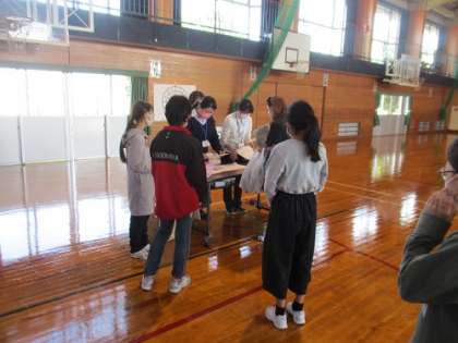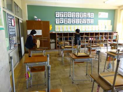 今日は、就学時健健康診断がありました。5年生は、会場準備、受付、誘導などの仕事を担当しました。「ピカピカになるようにがんばろう」と気合いを入れて、清掃に取り組みました。目線を合わせ、小さなお友達に話しかける子供たち。頼もしい5年生の姿がたくさん見られました。