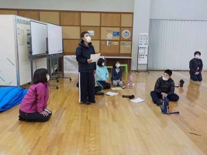 就寝前に、一日の活動を振り返りました。自分のがんばりや友達のよい所をたくさん見付け、発表しました。