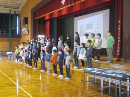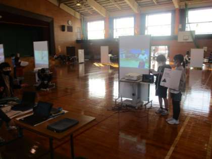 「私の学び発表会」に向けて、体育館での練習が始まりました。子供たちは、それぞれの学びをうまく伝えようと工夫を重ねています。