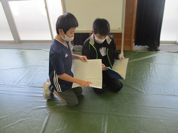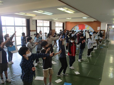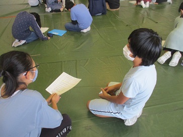 体育館や多目的ルームで、オープニングとエンディングの練習をしました。いい表情で、みんなノリノリです。よりよい台詞の言い回しになるように、話合いも行いました。